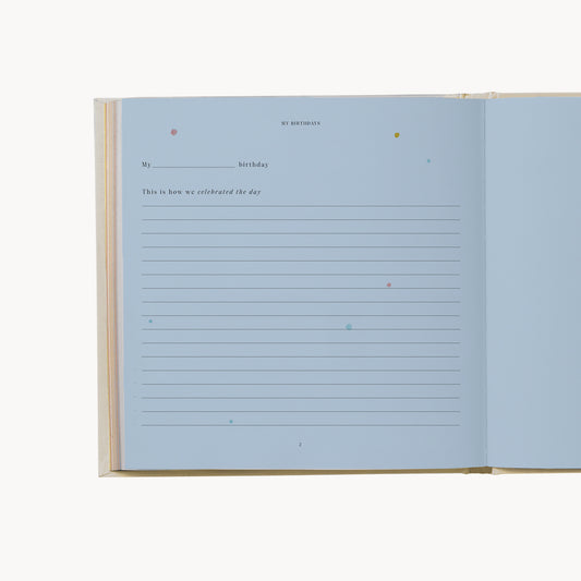 Fødselsdagsbogen fra Specialday giver dig mulighed for at holde fast i nogle af de særlige øjeblikke fra barnets fødselsdage igennem tiden. Med få ord og billeder kan I med årene skabe jeres helt egen skattekiste, med fokus på barnets fødselsdage og året som er gået.