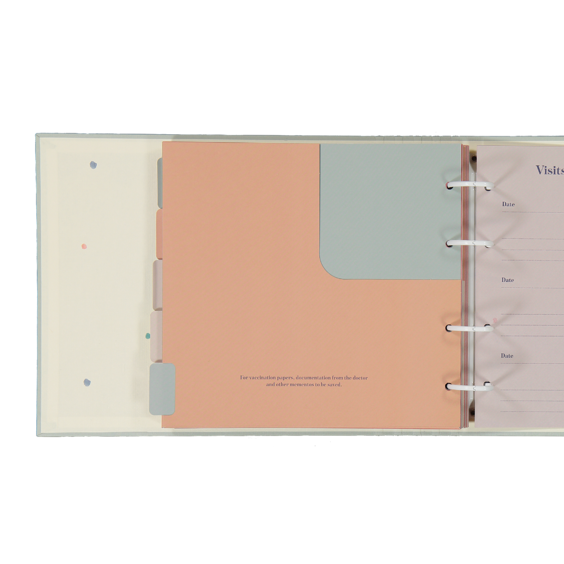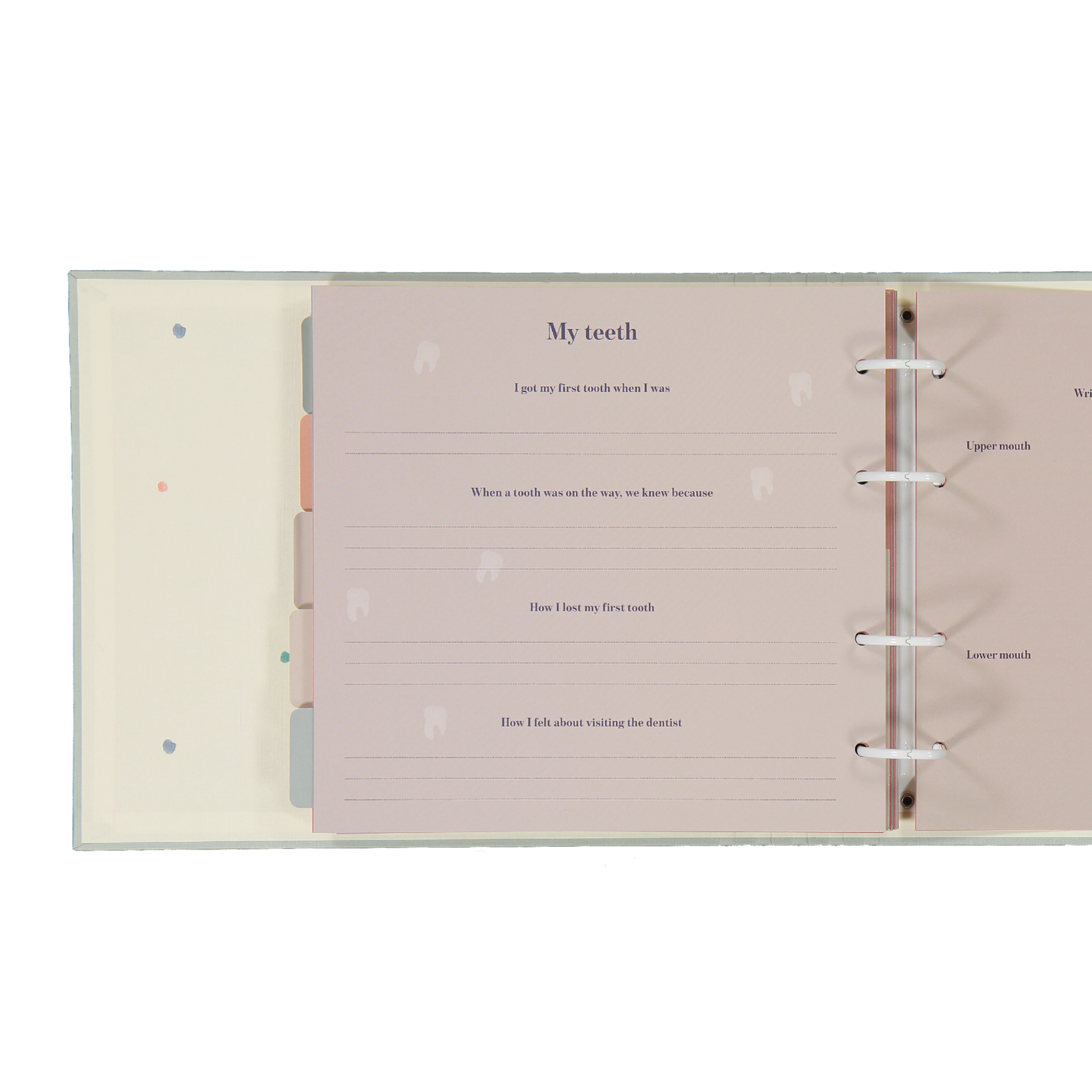 What makes 'My First Years - memories & treasures' (blue album) particularly unique and very practical is the smart ringbinder function in the books that allows you to decide how much you want to add and fill in. There is also the possibility to purchase extra pages and plastic pockets for your album so you can create your own personal book.