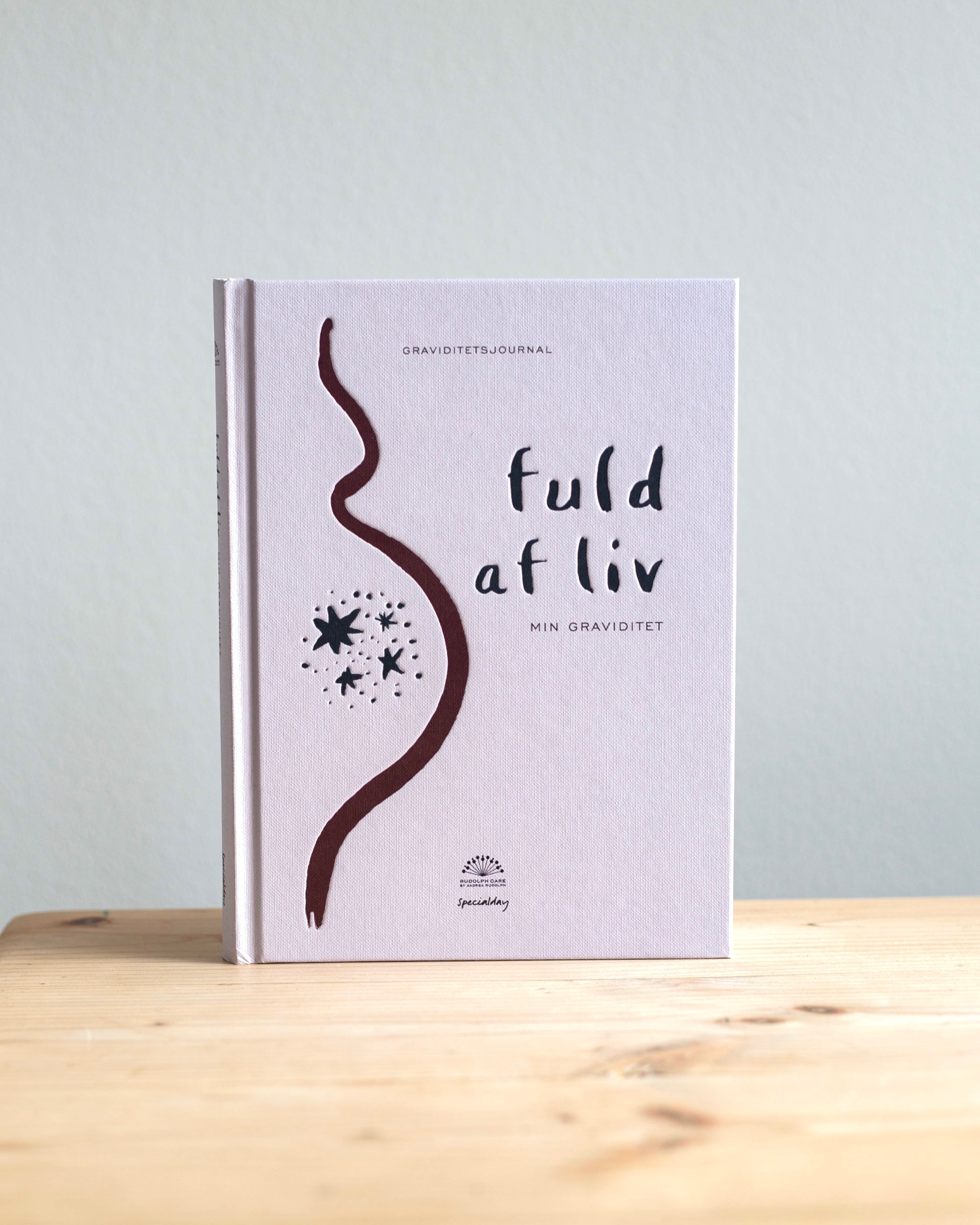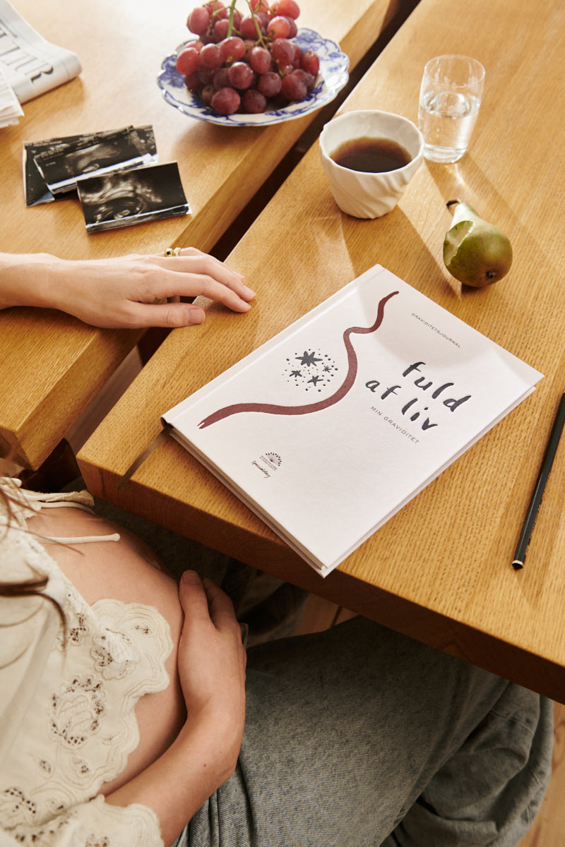 Bogen Fuld af liv – min graviditet er en udfyld-selv bog, en graviditetsjournal, hvor du som gravid kan samle dine tanker og skrive ned, hvordan du har det. Om lidt, når du står med din baby i armene, kan dagene flyde sammen. Så er det dejligt at have konkrete noter at se tilbage på – og ord, der kan vække minder om en helt særlig tid til live.
