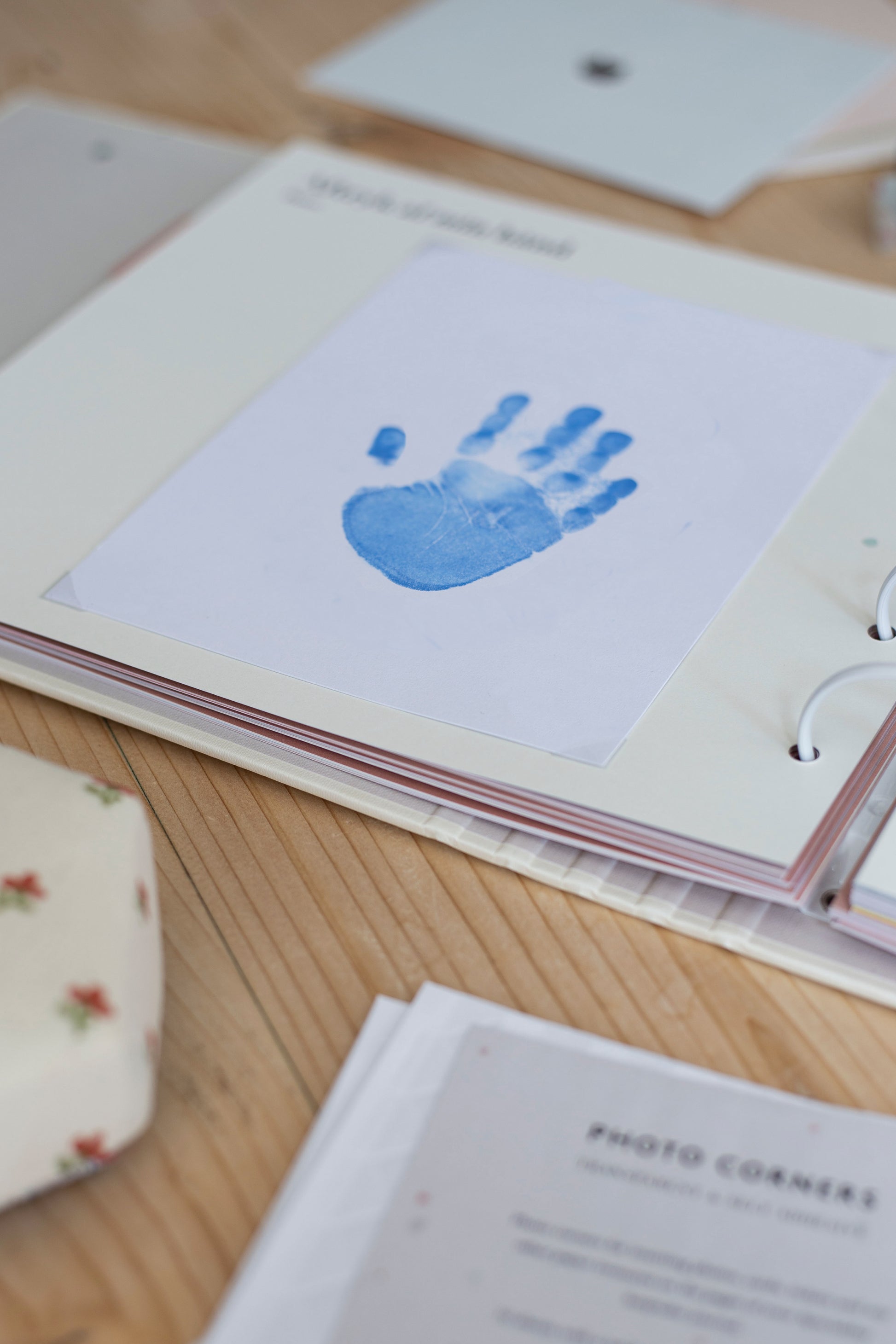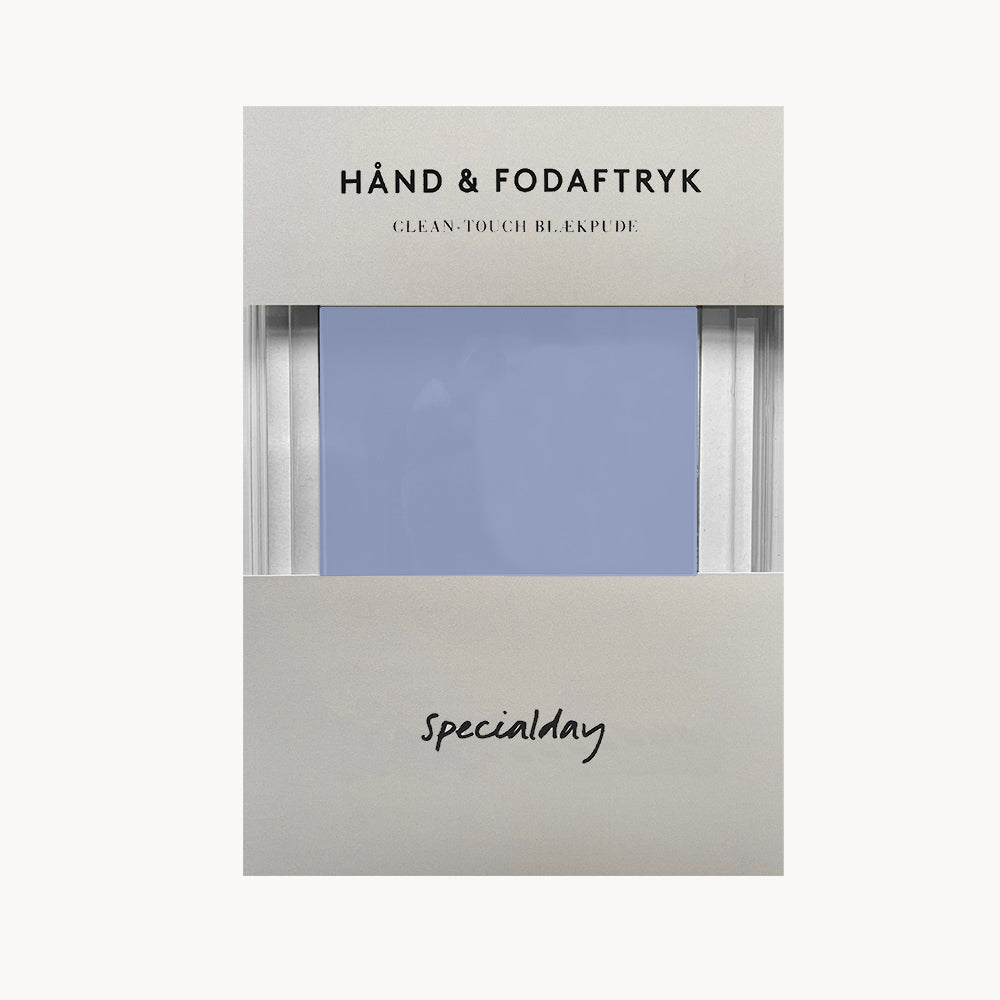 Hånd- og fodaftryk til baby og små børn i fine farver der passer til siderne i barnets bog fra Specialday.