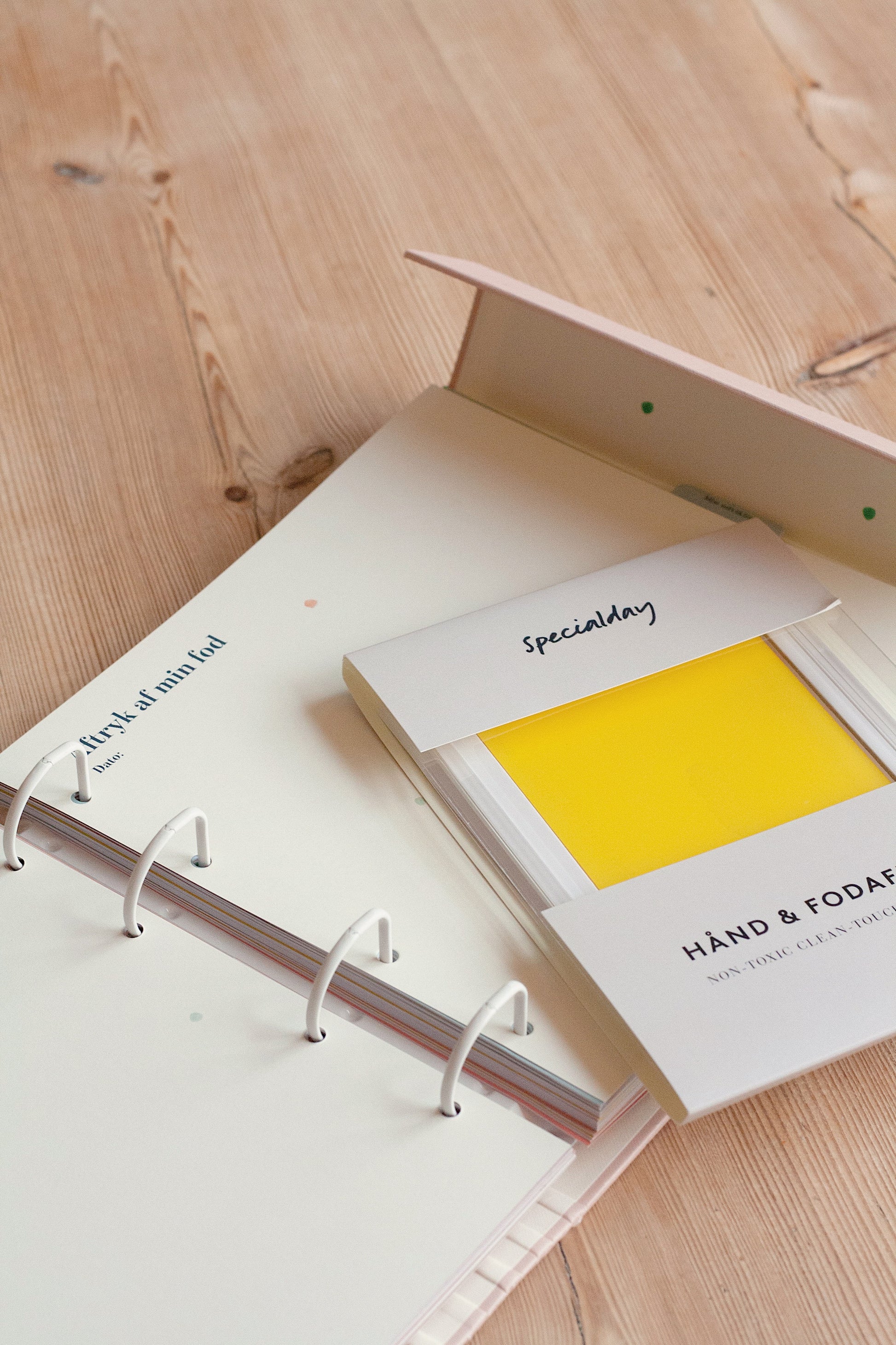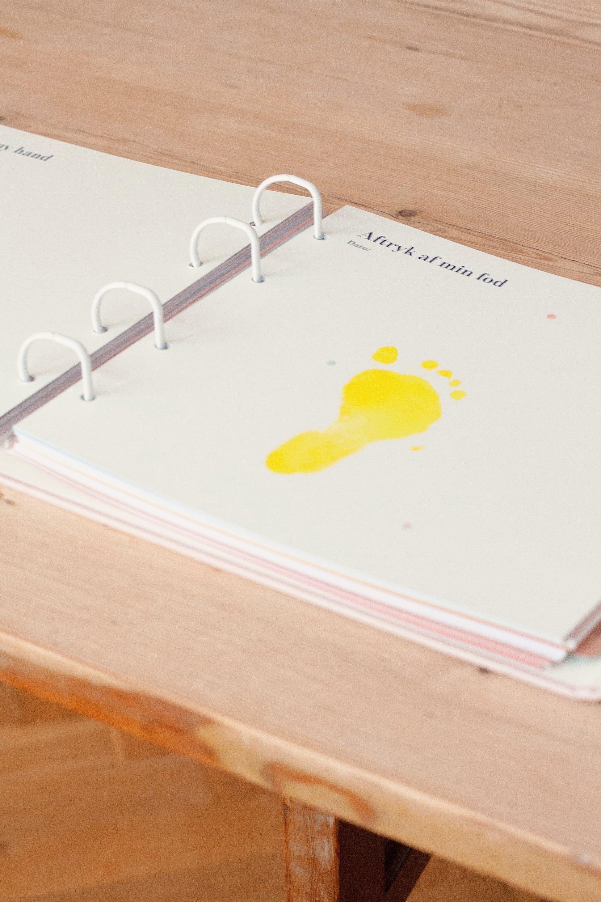 Hånd- og fodaftryk til baby og små børn i fine farver der passer til siderne i barnets bog fra Specialday.