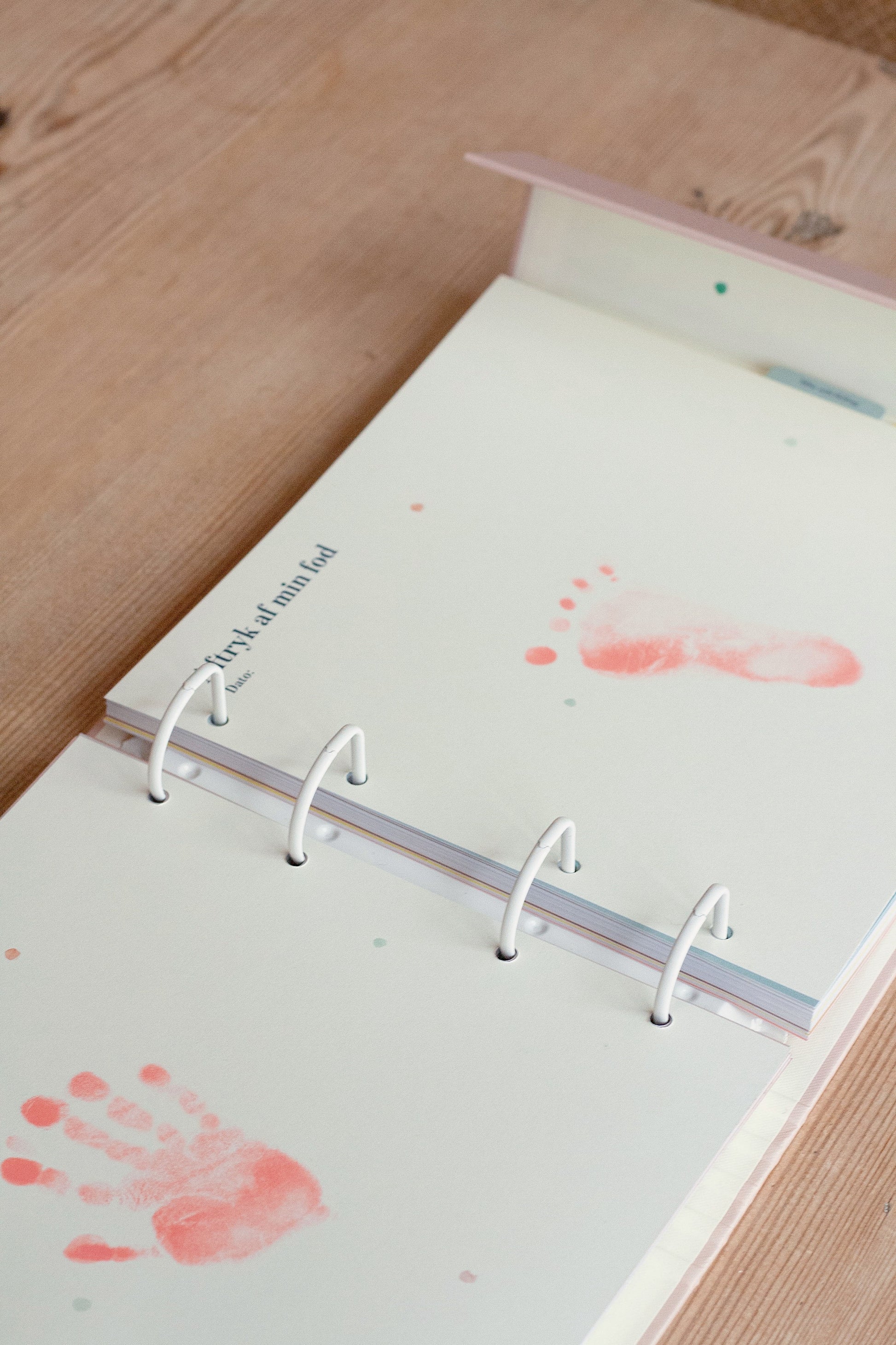 Hånd- og fodaftryk til baby og små børn i fine farver der passer til siderne i barnets bog fra Specialday.