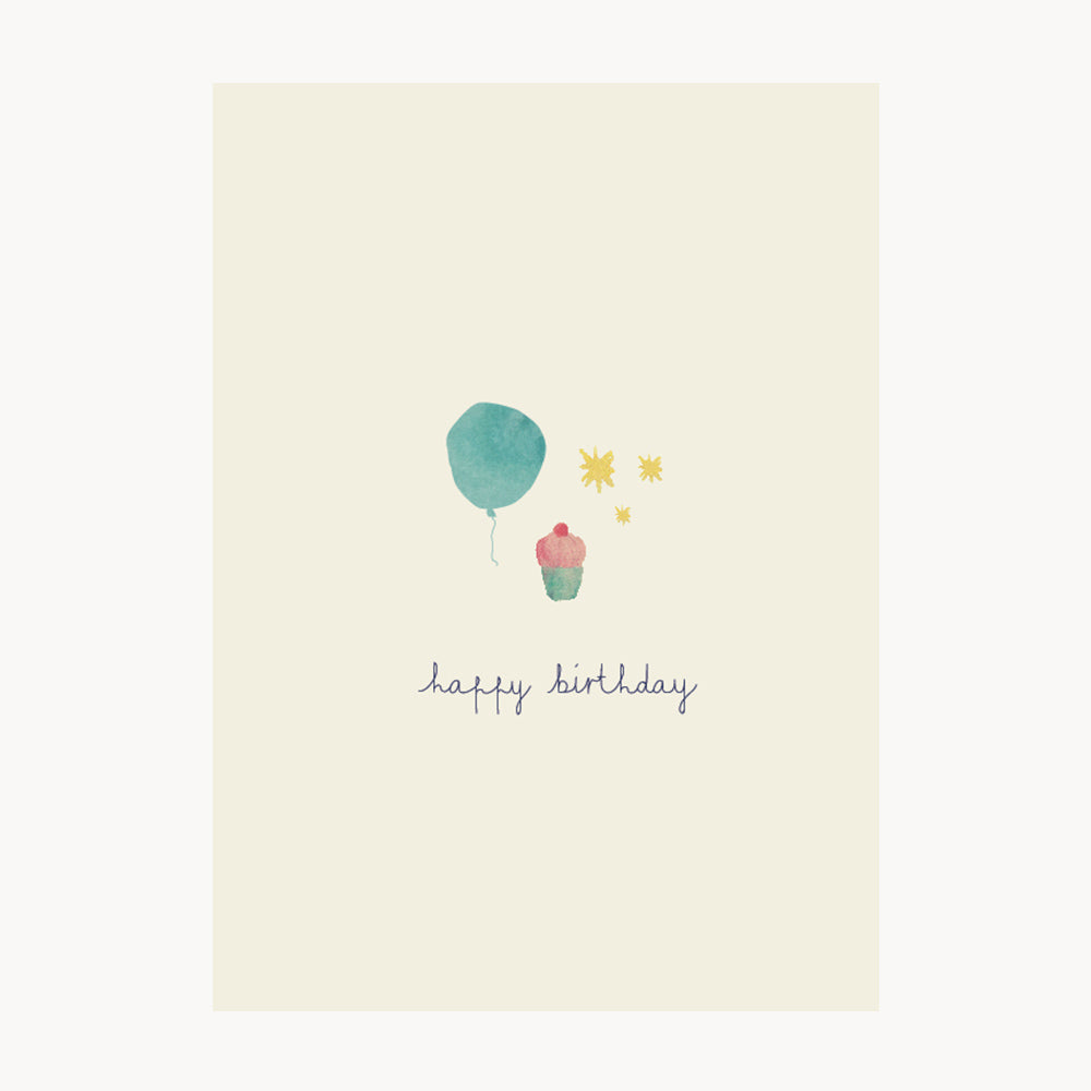 Bring glæde med dette kort, som er smukt illustreret med en fin, håndmalet tegning i akvarel og teksten 'happy birthday'.