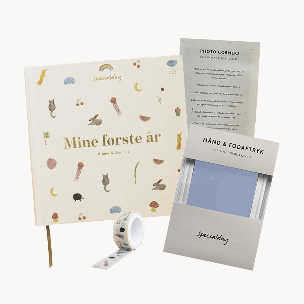 Pakke til en særlig pris med barnets bog fra Specialday samt tilbehør, så du kan skabe en unik skattekiste af minder, der kan bevares hele livet.