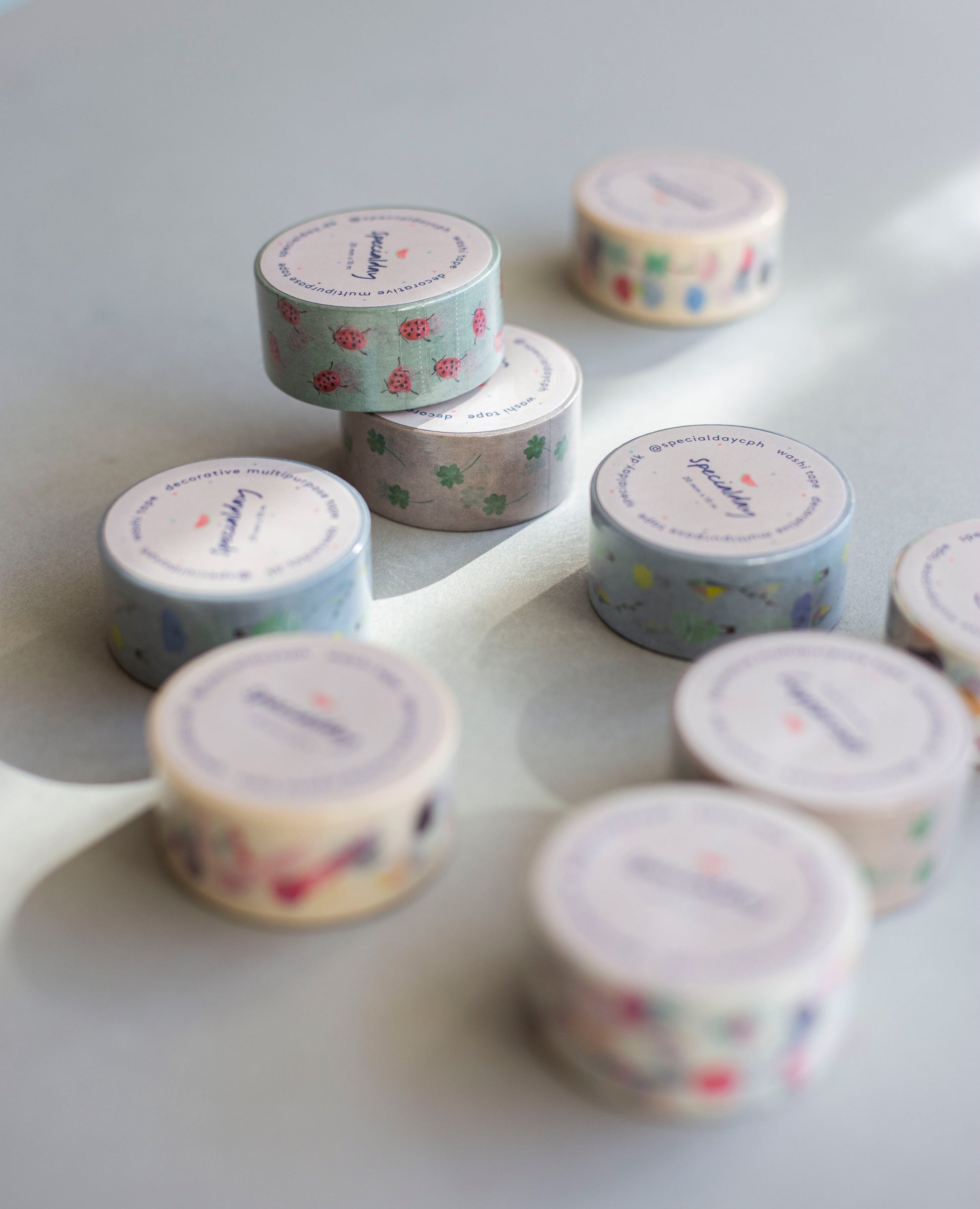 Dekorativt og multi funktionelt washi tape fra Specialday som er smukt illustreret med håndmalede tegninger i akvarel.